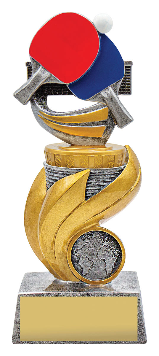 Flame trophy series is a popular and reliable choice featuring a dynamic design that celebrates your sport or activity. Table Tennis trophies available in 3 convenient sizes with the option of including a 25mm insert if required.