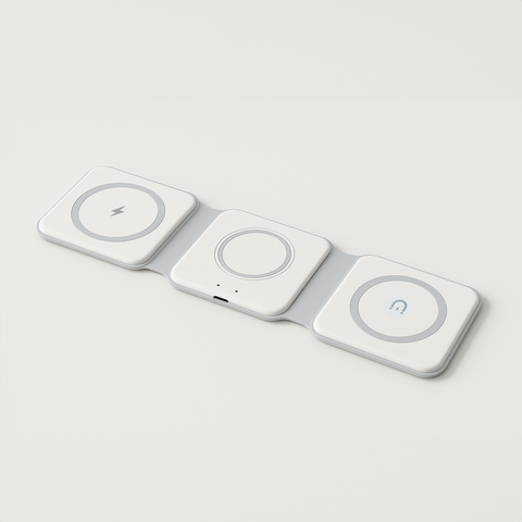 Power up without the cable chaos. The Matrix 3-in-1 MagSafe Wireless Charger keeps your phone, earbuds and smartwatch juiced up all at once, no juggling required. Fold it down for travel, flip it out on your desk and let the magnetic magic do the rest. With a smooth ABS and silicon finish and fast-charging options up to 15W, it’s a clever bit of kit that pulls its weight. Presented in a black box with logo.