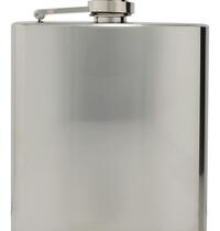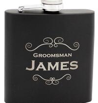 Premium 170ml stainless steel hip flask gift set with two shot glasses and a funnel. It laser engraves to a natural etch and is presented in a black gift box.