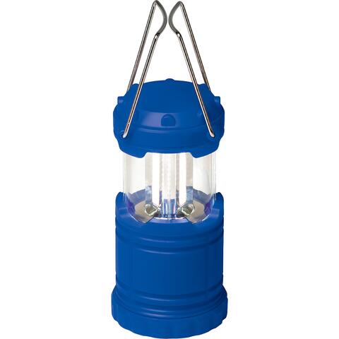 COB lantern turns on by sliding open and turns off by closing. Features metal carry and hanging handle. 5.5'''' fully extended. Includes 3 AAA batteries.
