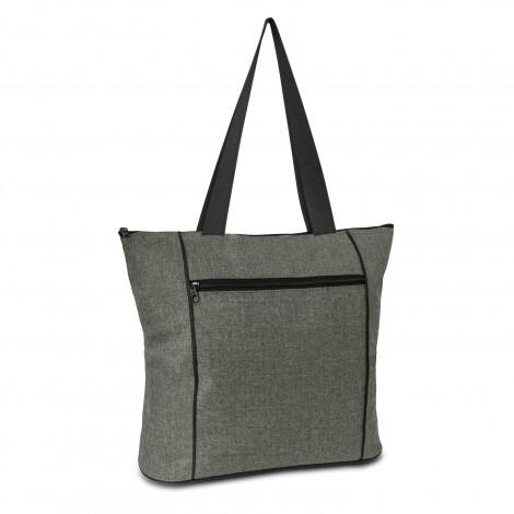 Premium tote bag with a rounded gusset and a sewn in base for added capacity. It is manufactured from poly-canvas with an on-trend heather style finish. Other features include a zippered front pocket, a secure zippered top closure and long woven carry handles so it can be comfortably carried on a shoulder.