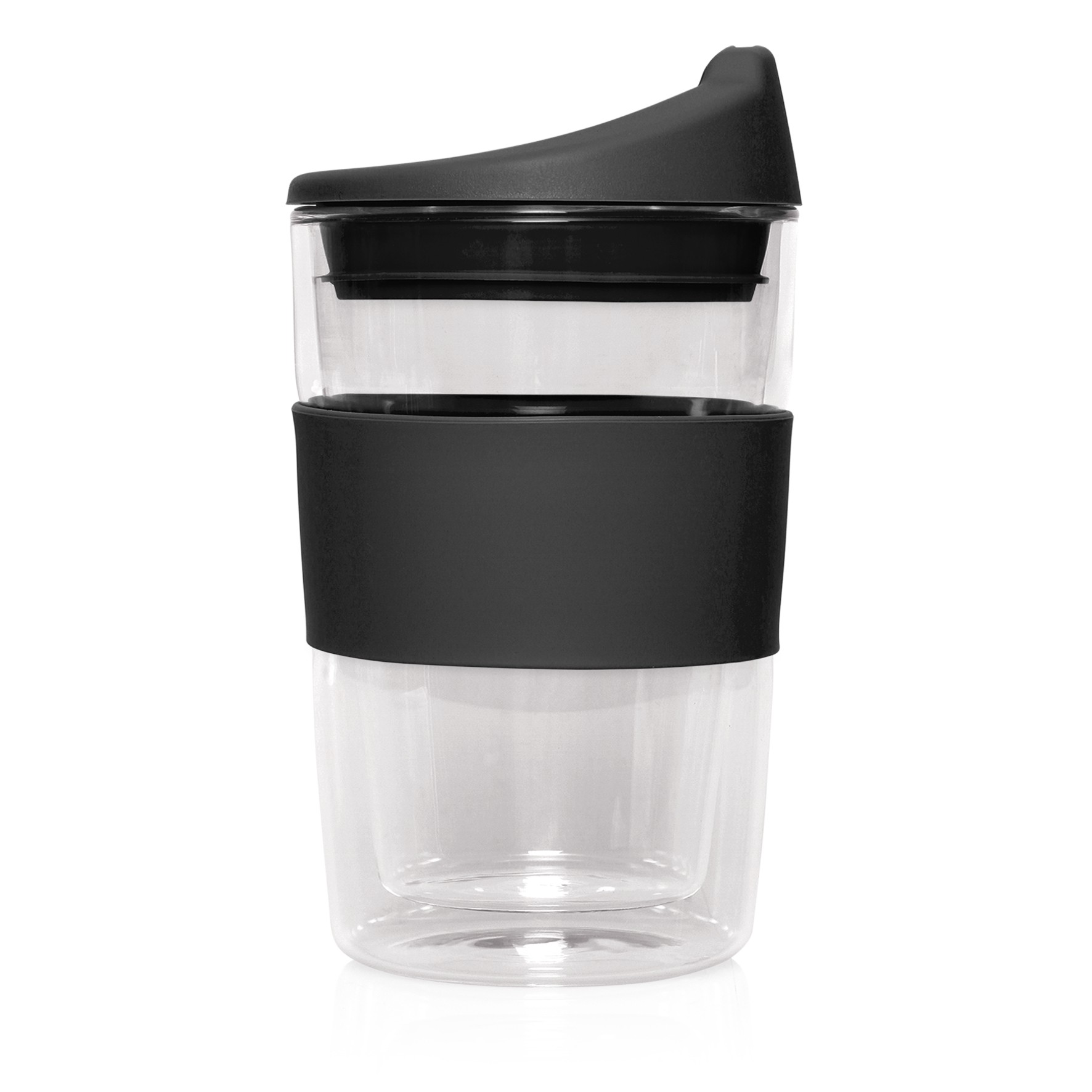 The 300ml, double-walled, glass Cup 2 Go provides an excellent return on investment. An everyday item that has the potential to be used ALL day in the home or office without the lid or in the car with the lid installed. And, of course, the more it is used the more visible the logo and the more effective the promotion. Glass is becoming an increasingly popular choice because, in addition to being environmentally responsible, it also provides a clean taste and is an exceptionally hygienic material. Logos can be printed on the silicone band. Sold in a retail quality gift box.