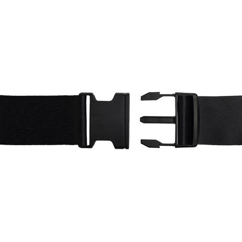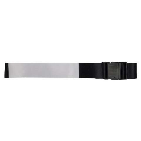 The Adjustable Black Polyester Luggage Strap, your travel essential for added security and easy identification. This strap features a large black plastic snap-lock buckle and measures approximately 175cm x 5cm wide. Each strap includes a blank white segment (245mm long) for full sublimation customisation. Ideal for securing cases and bags in case of zip failure and ensuring quick identification at airports.
