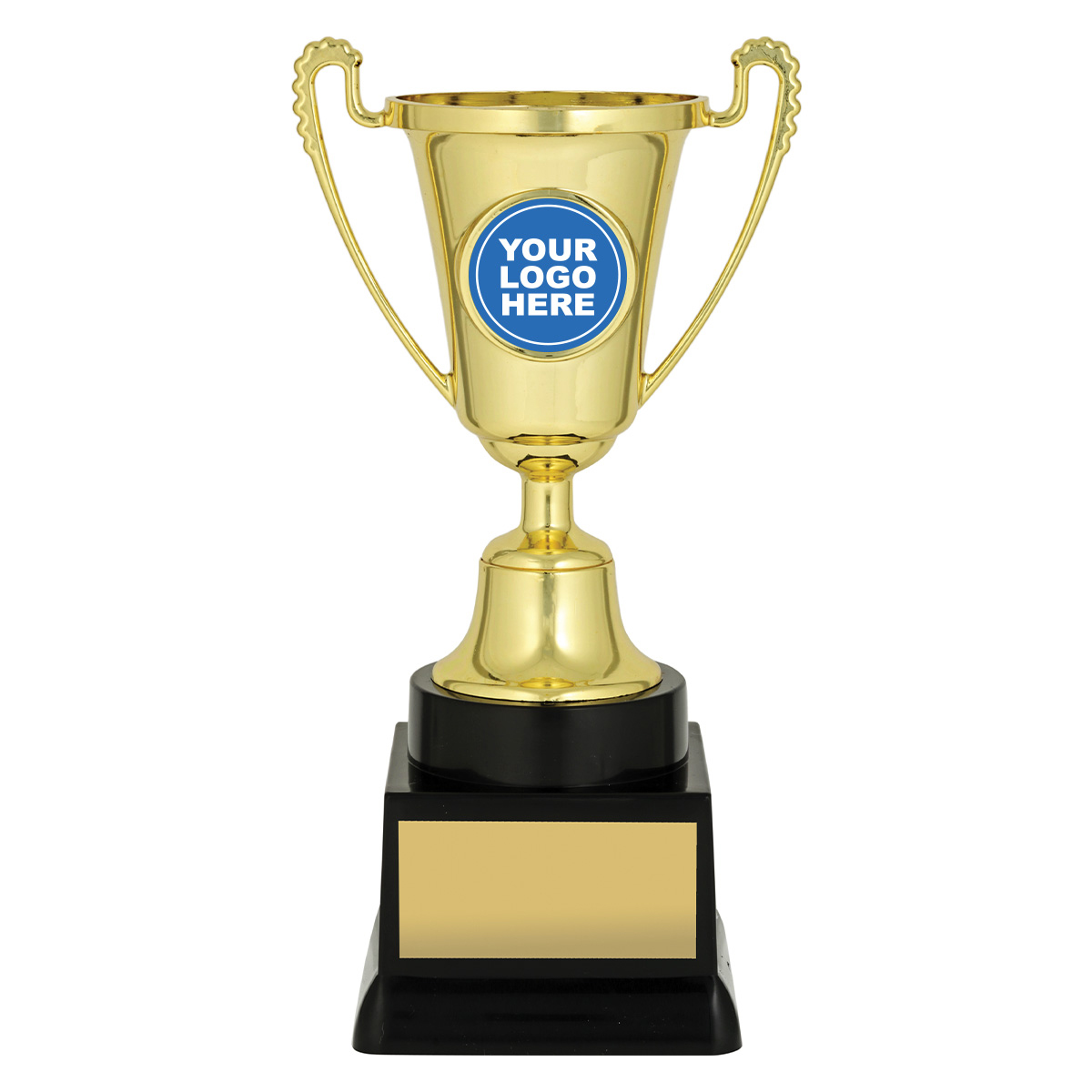 Charming trophy cup series in 3 convenient sizes features elegant black base for your engraving. Inserts available for all sports and activities - consider a custom option for your order.