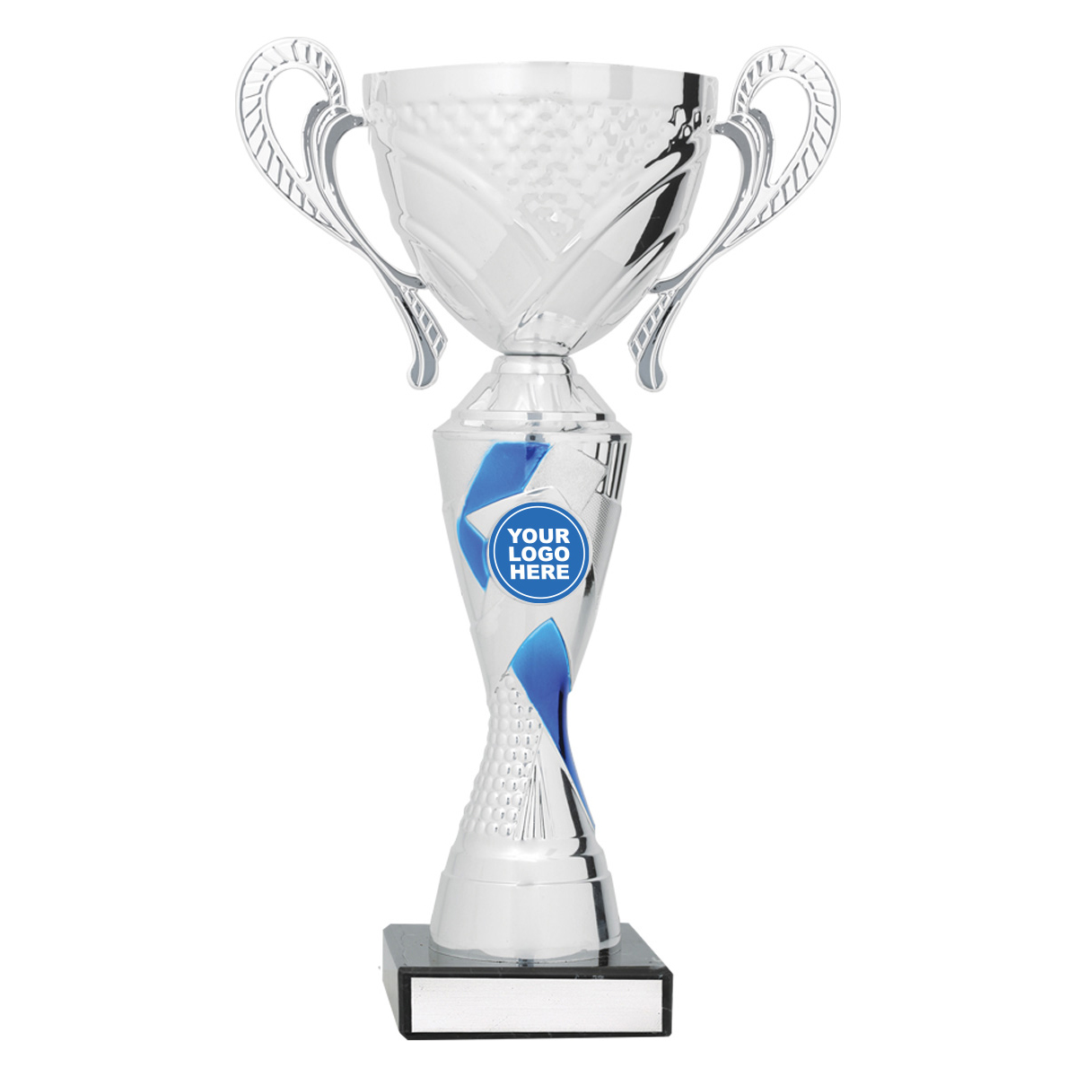 The Silver & Blue Trident series of cups present stylish trophies over a number of sizes with prominent space for your logo.