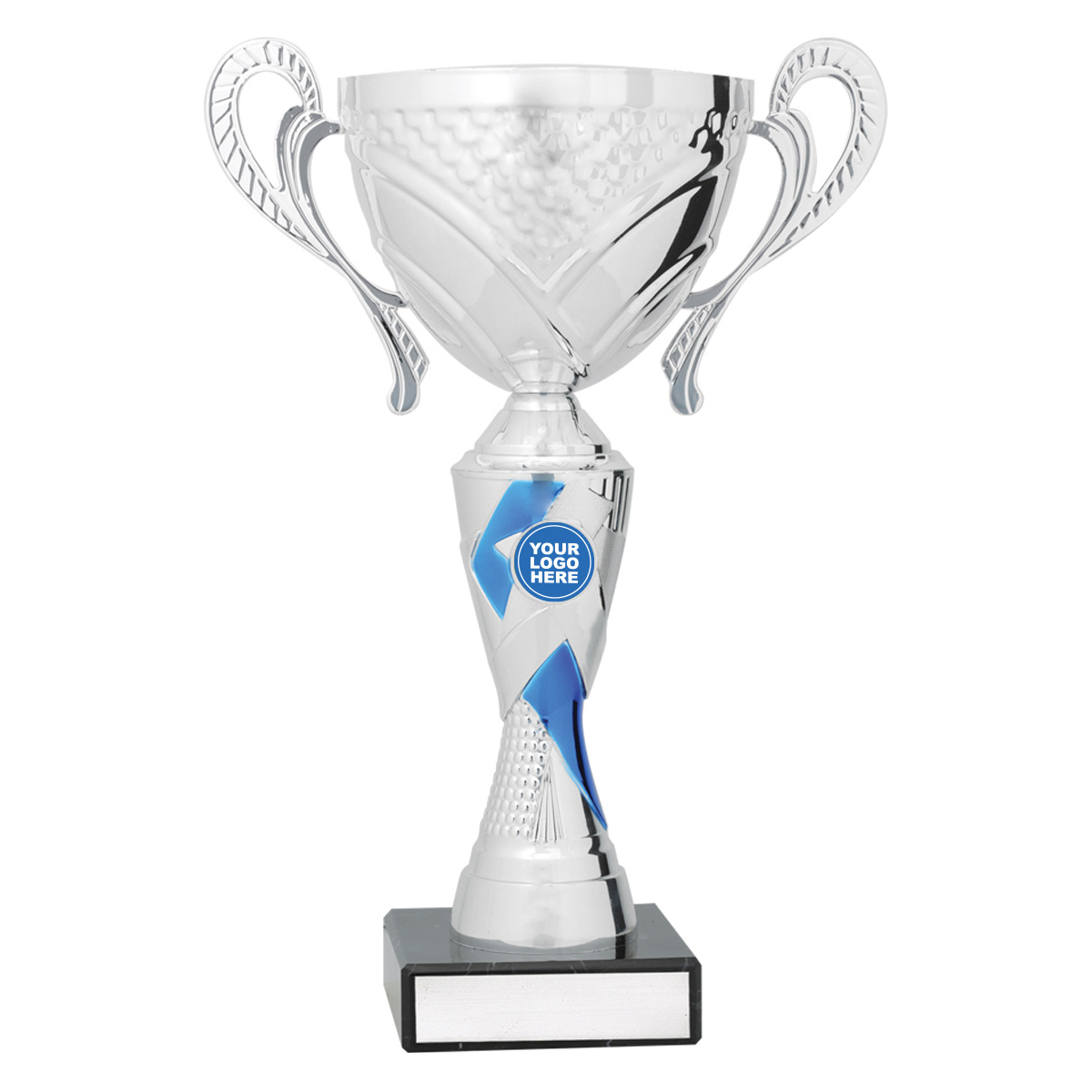 The Silver & Blue Trident series of cups present stylish trophies over a number of sizes with prominent space for your logo.