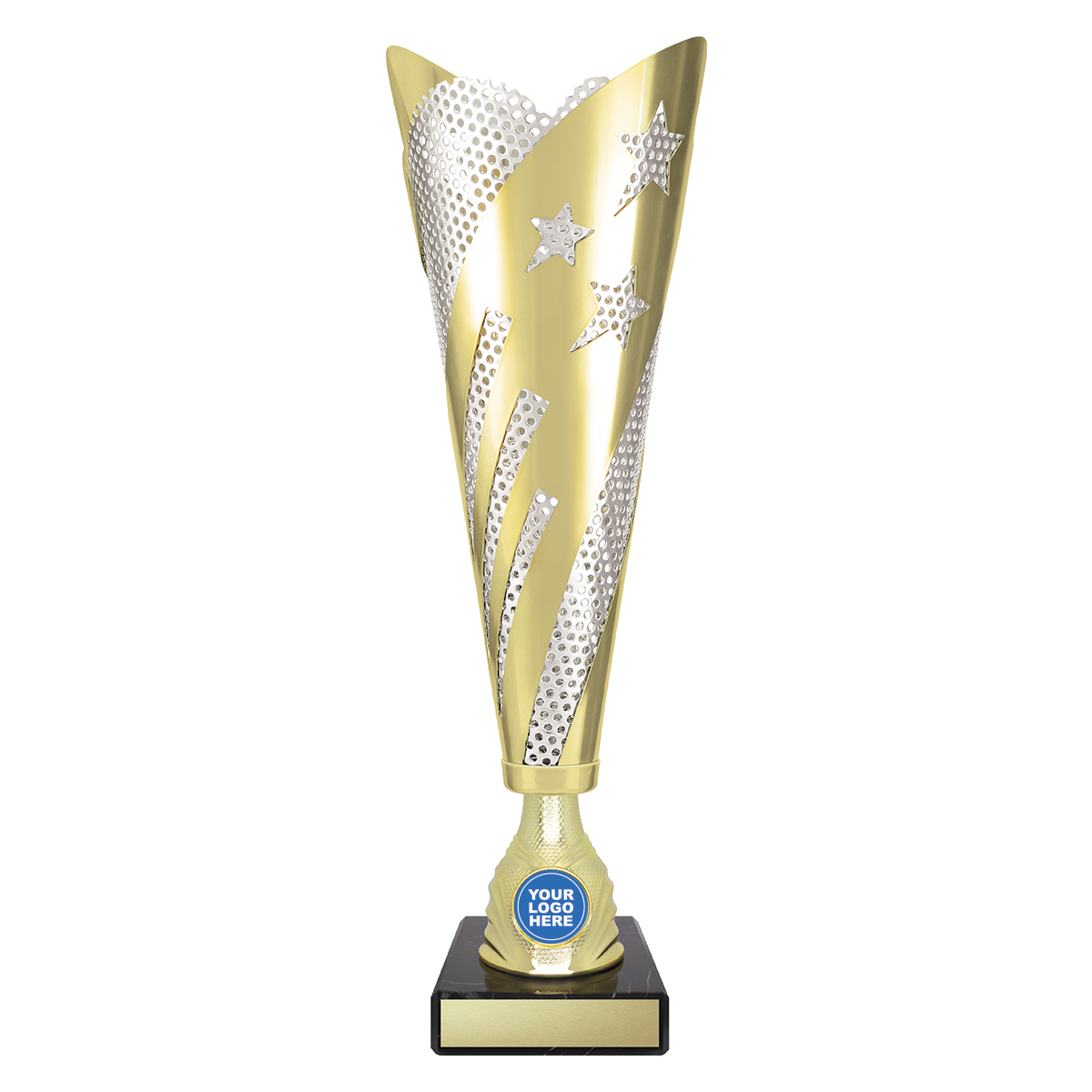The Celestial series of metal cups feature innovative mesh inlay design to elevate your award presentation. Space for your logo also provided.