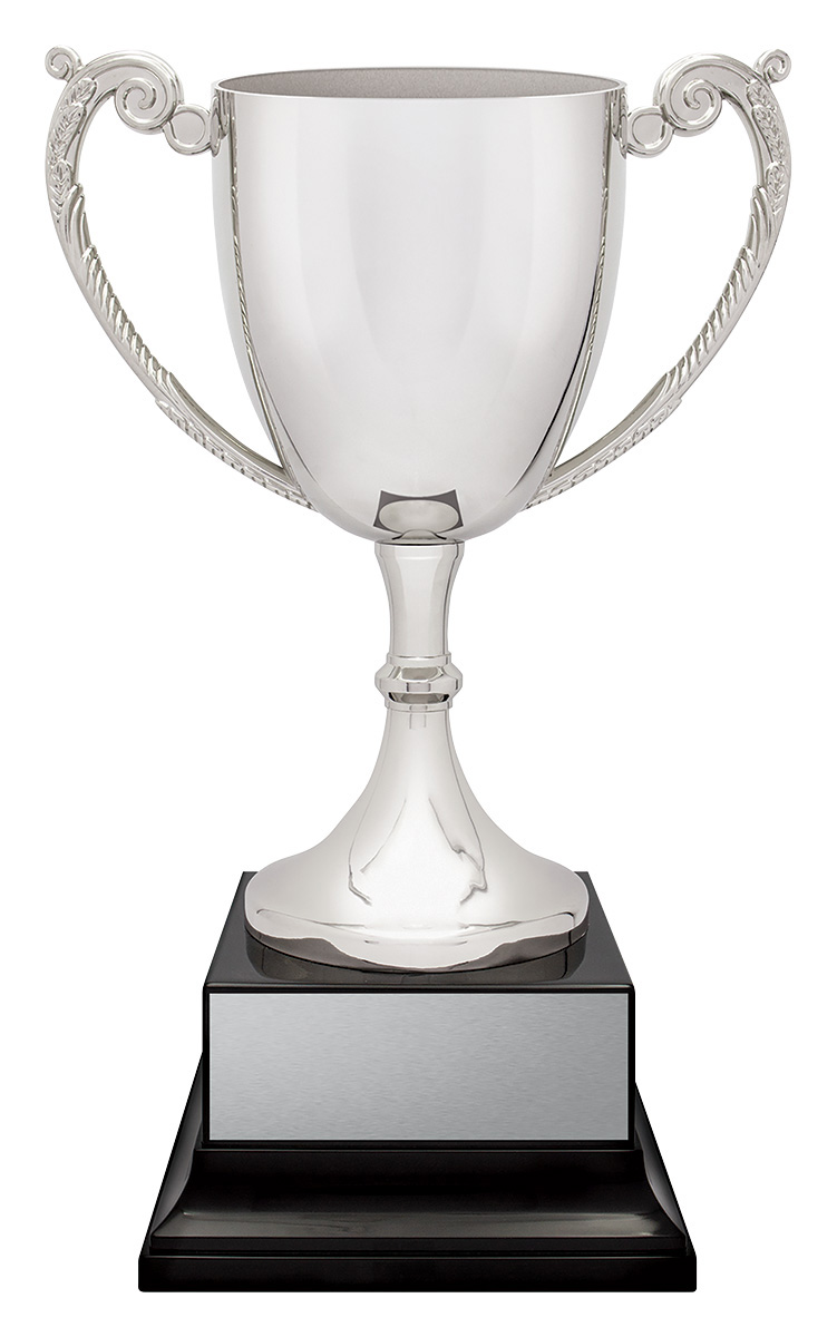 Elegant and traditional style of prestige cup of the highest quality. Assembled nickle plated cups on heavy black premium bases for your engraving. Available in various sizes.