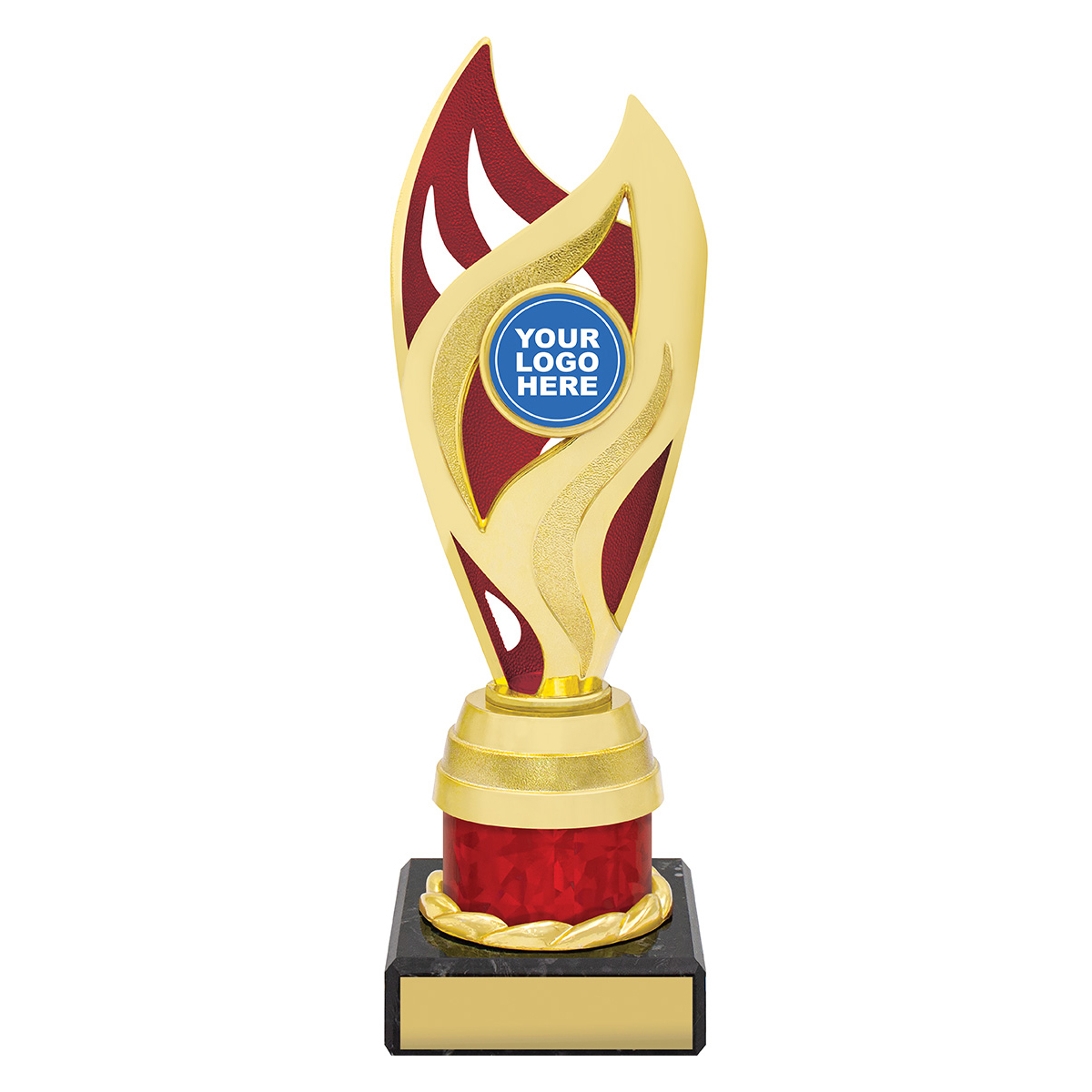 Vision Cups present an alluring flame like design with central position for your custom or club logo. Cups are available in many different colours to perfectly suit your award needs.