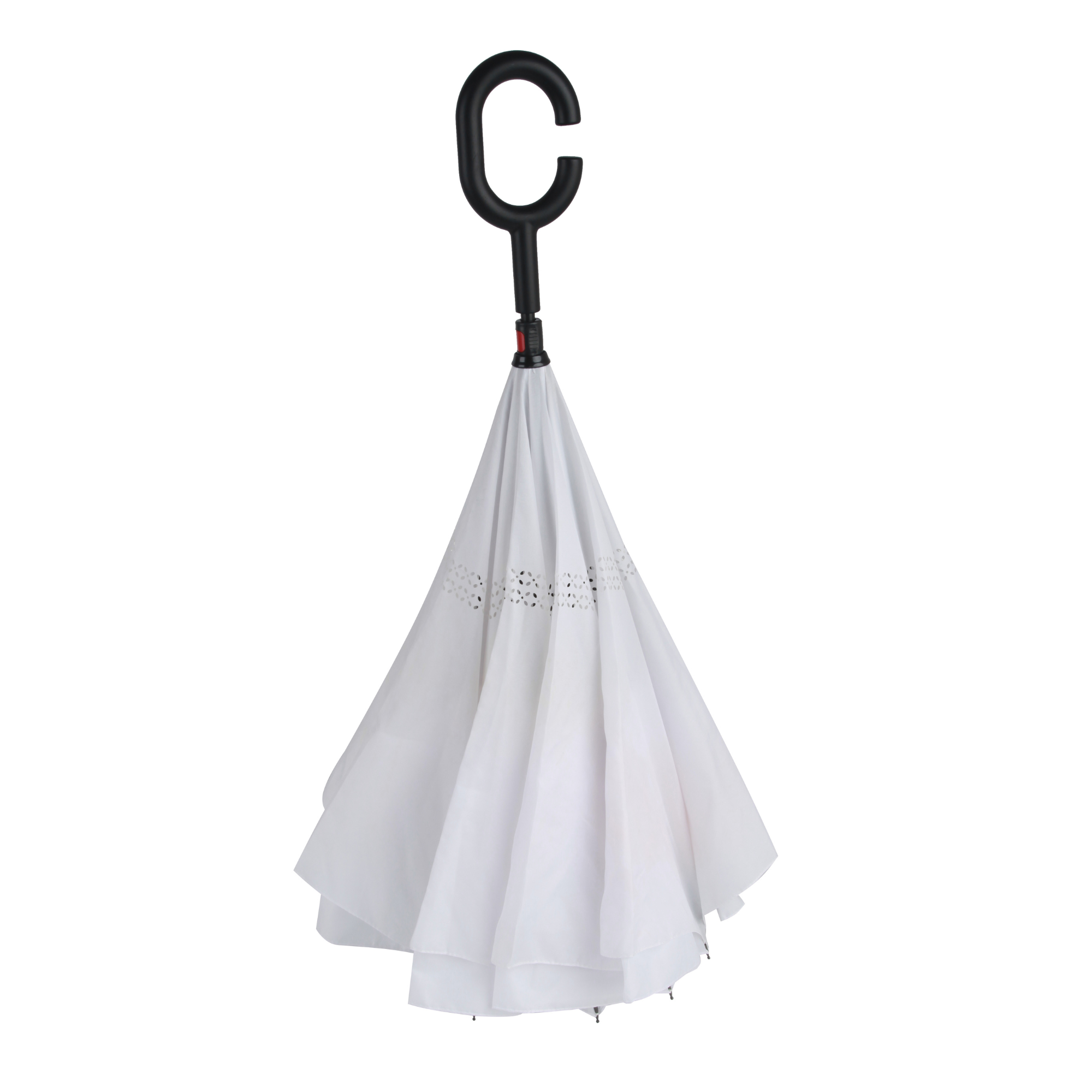 The Vienna Inverted Umbrella features a smart design that inverts upon opening or closing, keeping you dry and mess-free. With a twin-layer 190T pongee canopy and air vents for breathability, it provides superior protection in windy or rainy weather. Its fibreglass frame, steel shaft, and soft-touch C-shaped handle allow for hands-free use, making it ideal for commuting or multitasking.