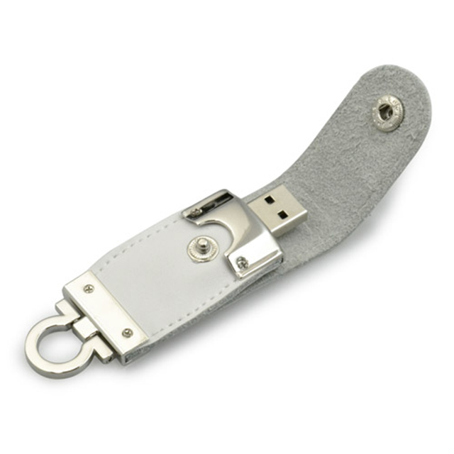 The Seal Leather USB Flash Drive blends style with practicality, featuring a leather-wrapped body and polished metal finish. Its fold-over strap with snap-button closure keeps the connector protected while offering a sleek, executive look. Perfect for branding, corporate gifts, and promotions, this drive combines durability with a professional design.