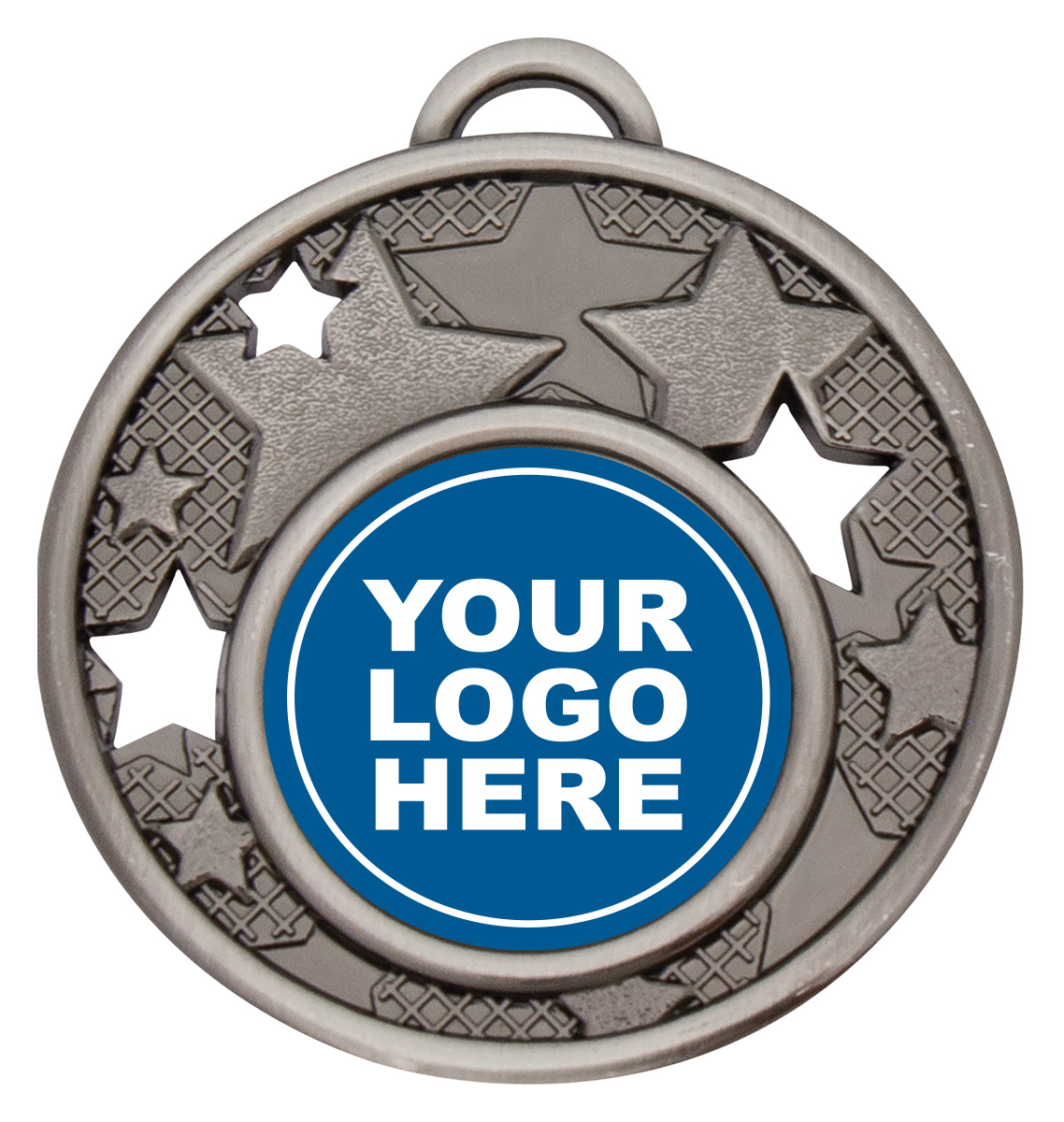Medal with stars for that special achievement or victory. Available in gold, silver and bronze. Inserts in all sports, consider also personalised custom logo centres. Need to order separately to the medal. Ribbons in all colours and medal presentation boxes also available.