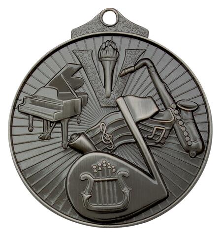 Antique gold, silver and bronze medals for Music. A classic design, the Sunraysia Medals feature iconic and common elements for music including notes and instruments. Medals feature an extra thick edge and a rectangle panel on the back of the medal for your engraving.