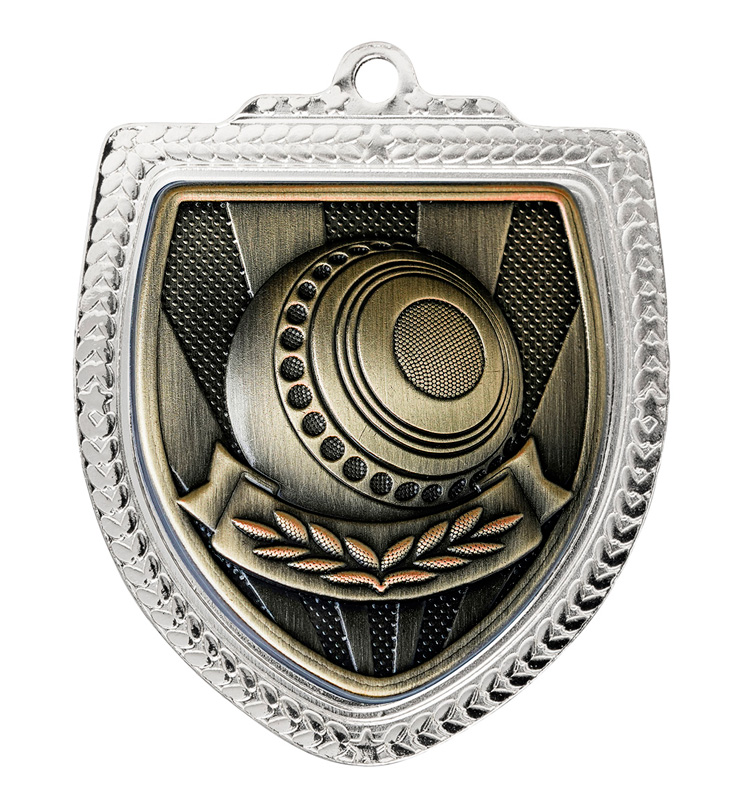 Shield Medal - Lawn Bowls Ball Silver-Antique Gold 80mm