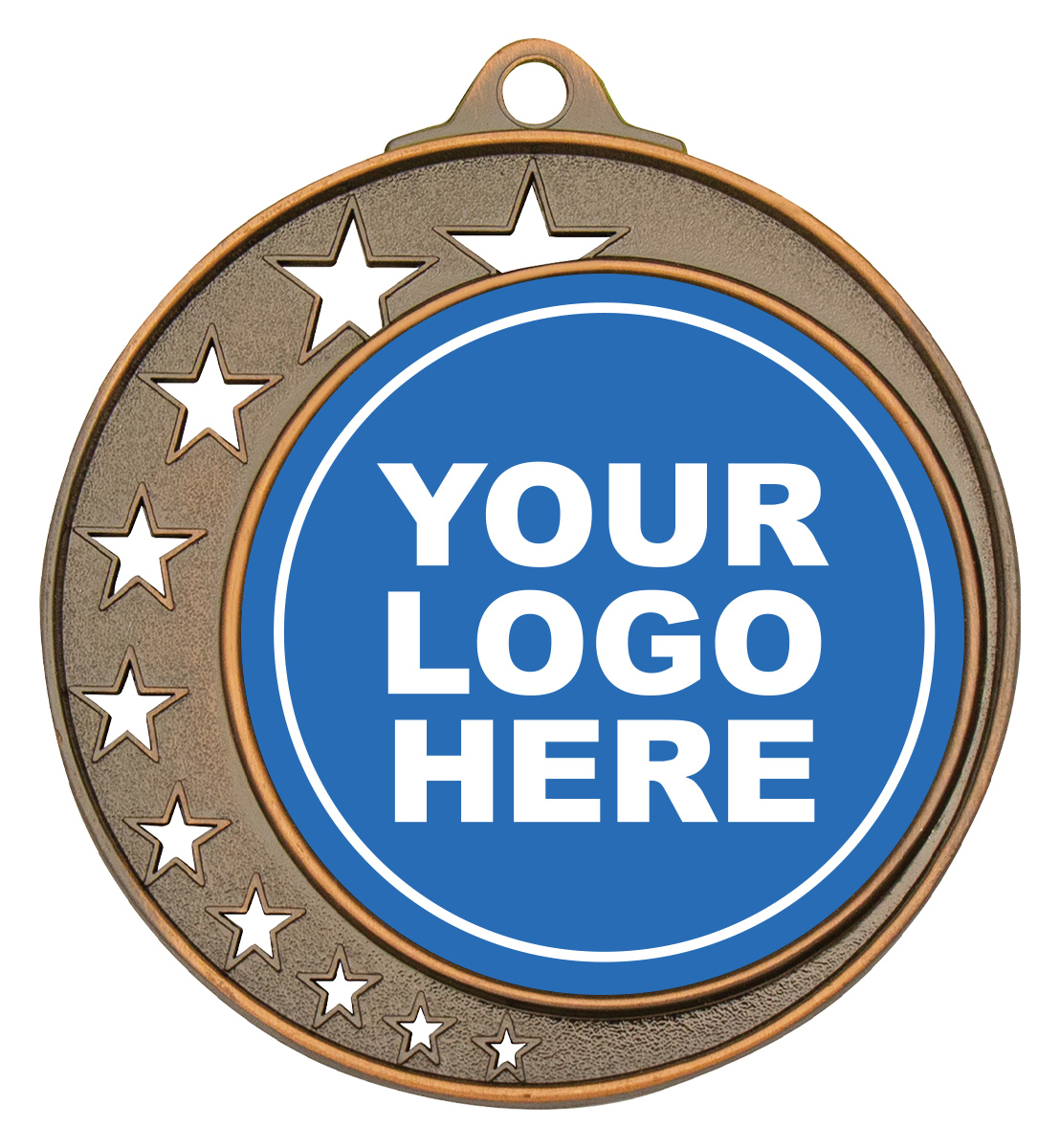 Star Series medal in gold, silver and bronze. Special design features stars and commemorative wreath with space for 50mm insert. This larger version of the medals are a truly prestigious award option. Inserts for all activities and consider personalised custom logo centres. Ribbons in all colours and medal presentation boxes also available.