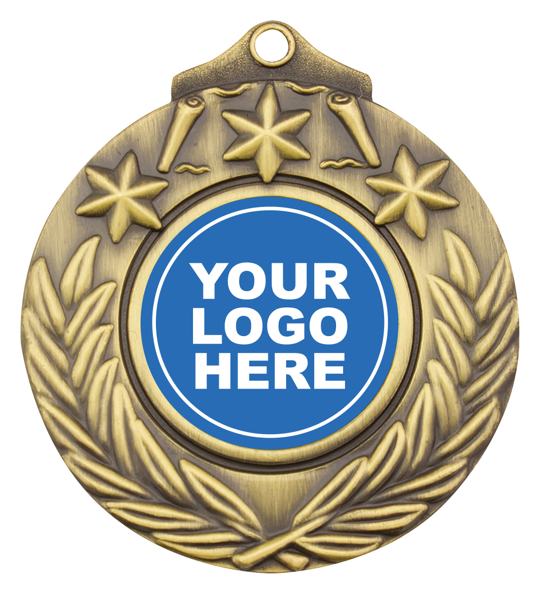 Victory style medal in gold, silver and bronze. Design features both stars and a crossed wreath to commemorate your event or presentation. Inserts available for all activities and consider your custom options. Ribbons in all colours and medal presentation boxes also available.