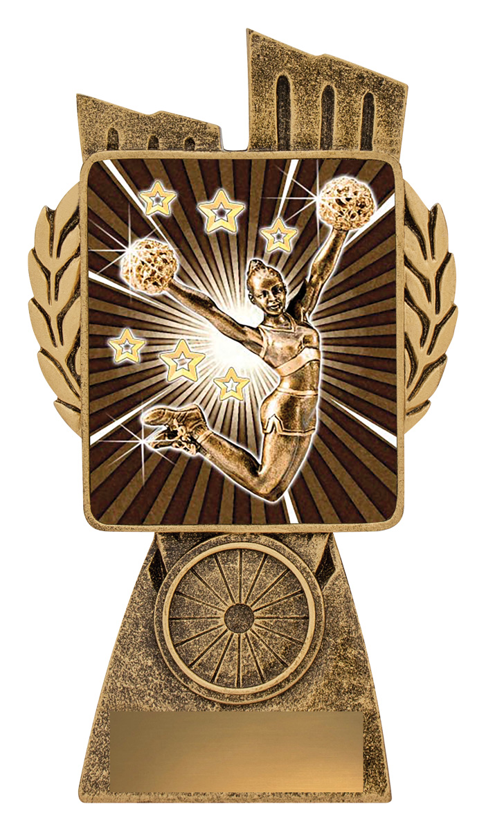 This Antique Gold Lynx Trophy is the perfect theme award for various cheerleading events. Featuring a classic wreath and vibrant design, these Cheer trophies are customisable and available in 4 impressive sizes. Lynx medal completes the range of Cheerleading trophies.