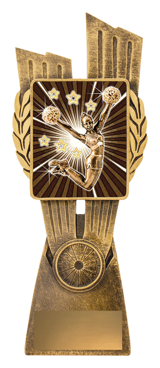 This Antique Gold Lynx Trophy is the perfect theme award for various cheerleading events. Featuring a classic wreath and vibrant design, these Cheer trophies are customisable and available in 4 impressive sizes. Lynx medal completes the range of Cheerleading trophies.