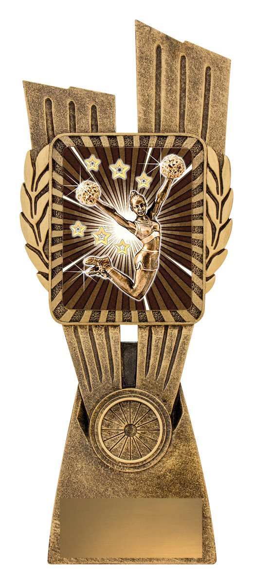 This Antique Gold Lynx Trophy is the perfect theme award for various cheerleading events. Featuring a classic wreath and vibrant design, these Cheer trophies are customisable and available in 4 impressive sizes. Lynx medal completes the range of Cheerleading trophies.