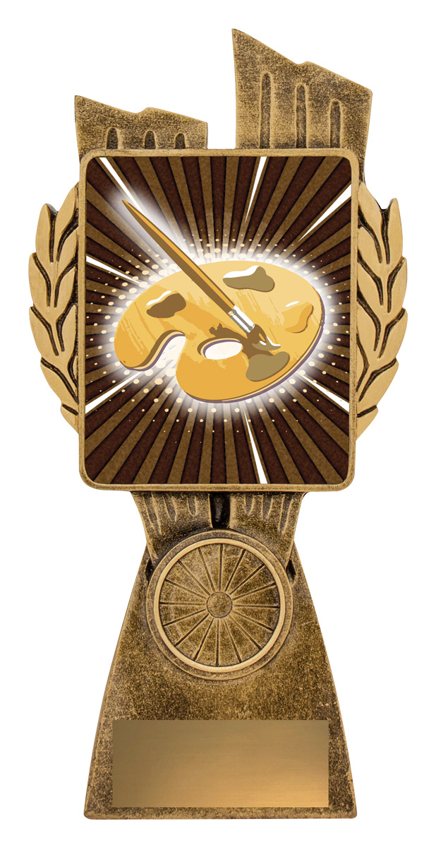 This Antique Gold Lynx Trophy is the perfect education award for visual arts and painting. Featuring a classic wreath and vibrant theme design, this art trophy is customisable and available in 4 impressive sizes. Matching Lynx Medal is also available to complete your selection.