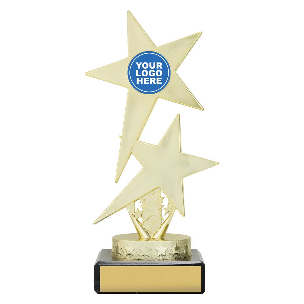 Versatile Twin Star series features dynamic star inspired top on bright Dazzle columns - choose colour to suit your order. Show off your logo or insert in style.