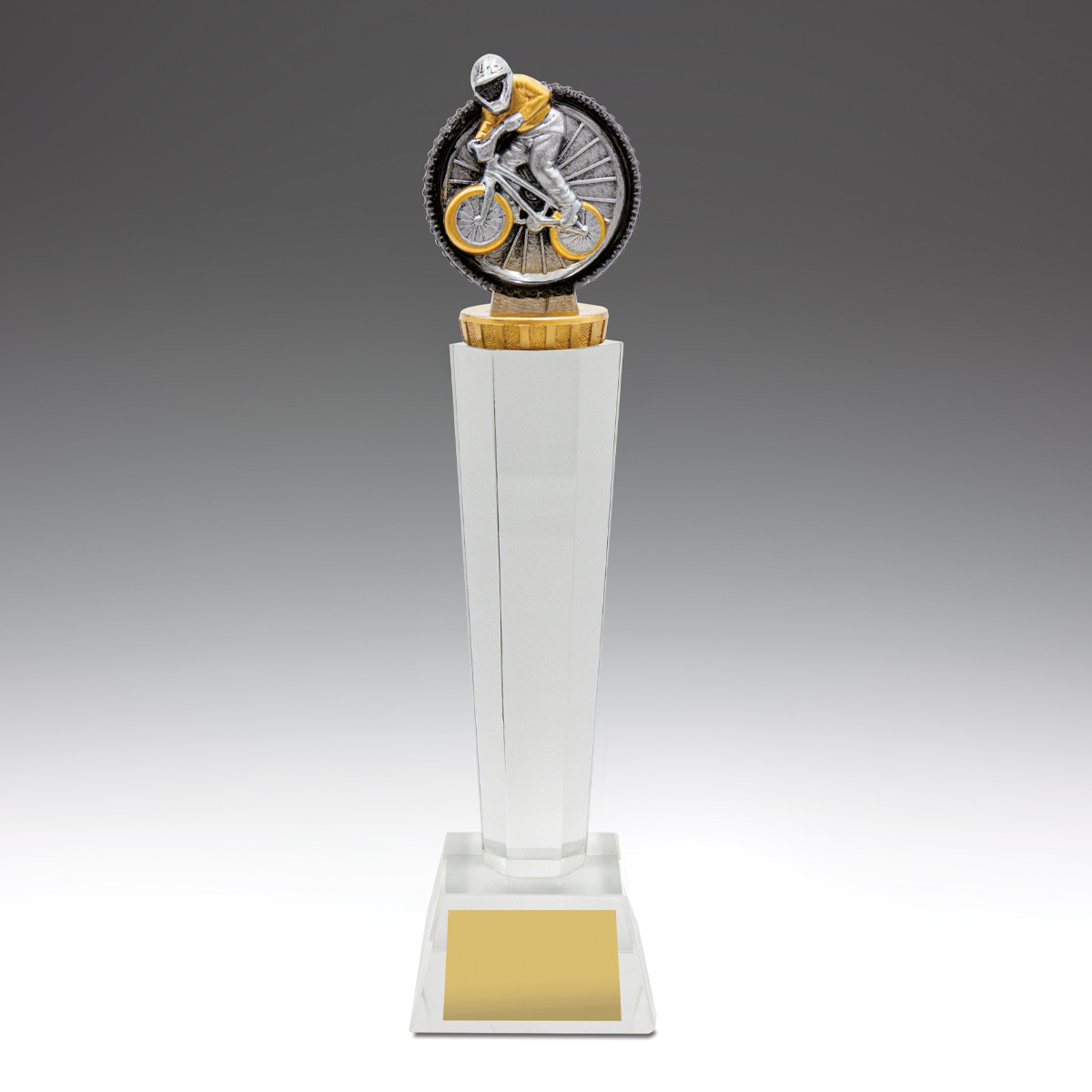 Brilliant trophy series for top performers, the Crystal Pedestal Series is available in 3 sizes. The crystal is finished with charming antique silver BMX motif top. Prestige trophies suited for BMX events and competitions and will be supplied in premium presentation gift boxes.