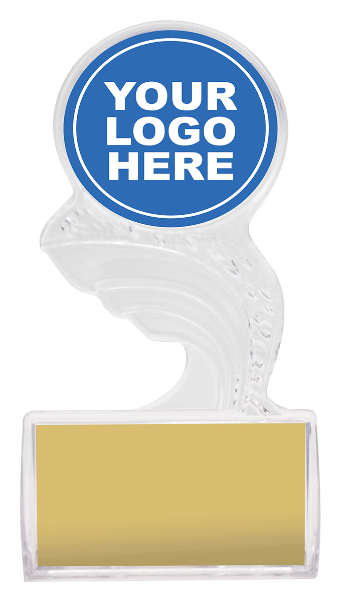 Excellent value acrylic trophies with prime position for your 50mm custom logo. Or choose from the generic sports theme inserts available.
