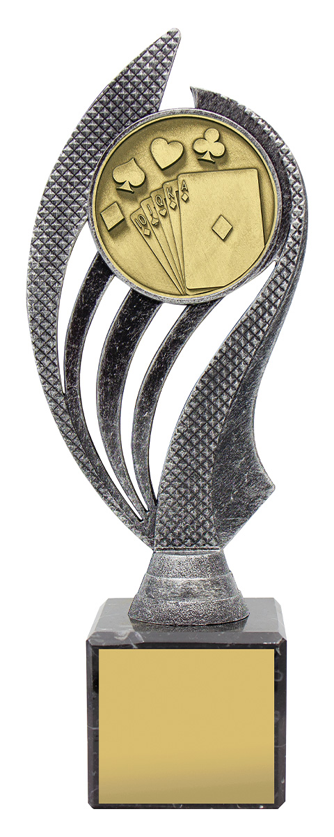 Husky series of trophies on premium black marble allows for different award options for your activity. Appealing antique silver and gold combination over number of sizes.