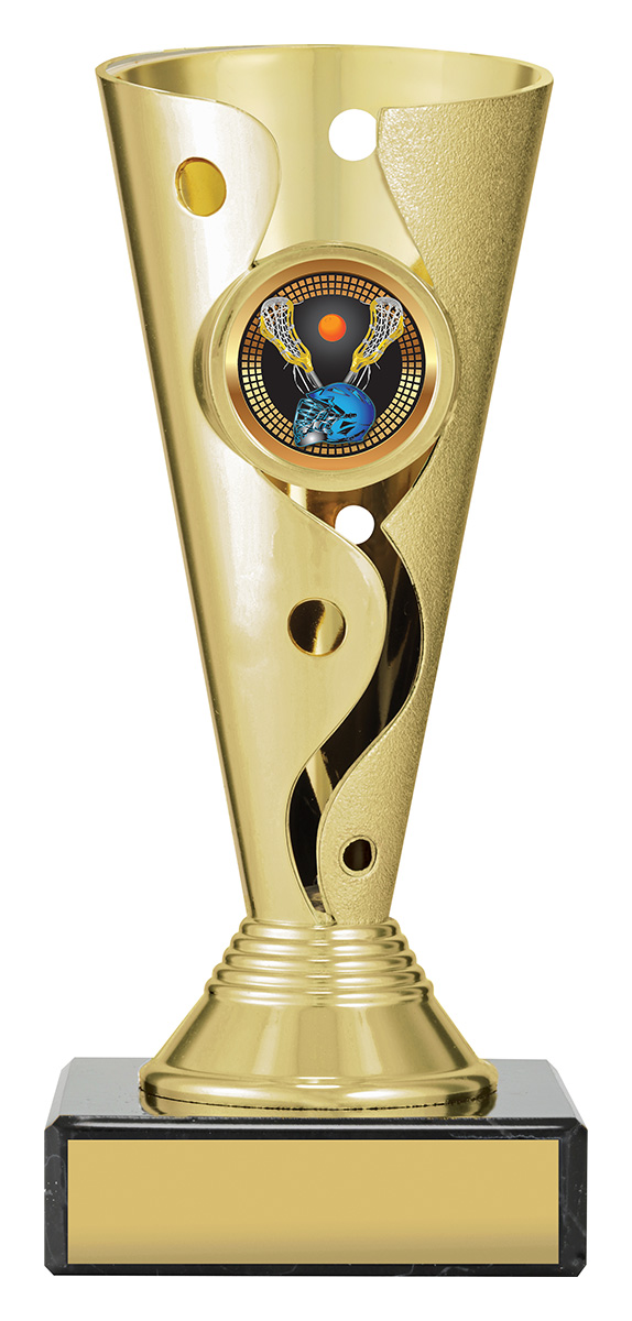 Carnival cups present a distinctive cup style trophy with attractive 3D design - on classic black marble base for your engraving - with brightly coloured insert for your sport. Trophies adaptable to your custom requirements.
