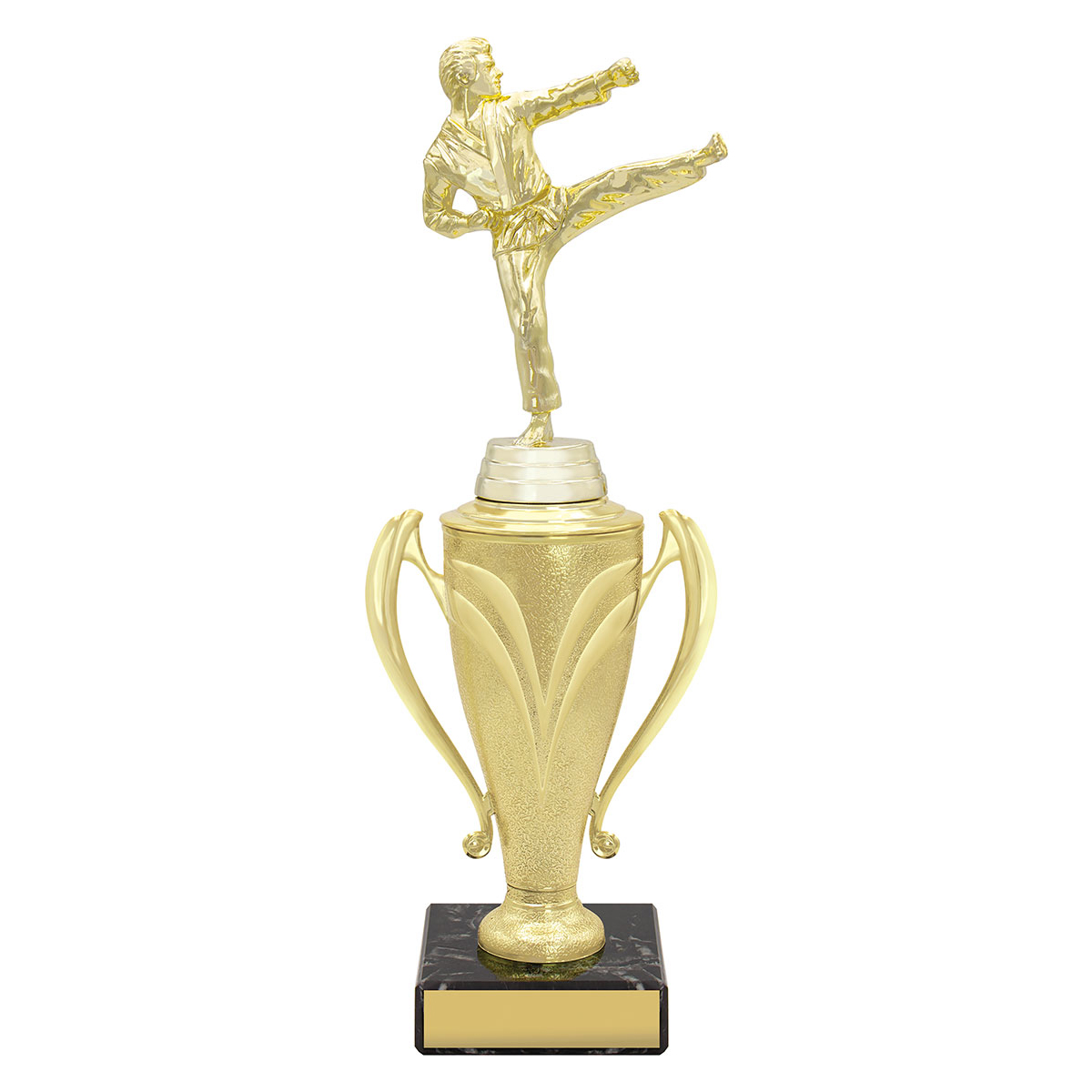 Series of gold trophy cups ideal for the figurine or top to represent your sport or activity. Available in 5 great sizes, trophies are brilliantly finished in bright gold and feature classic marble bases.