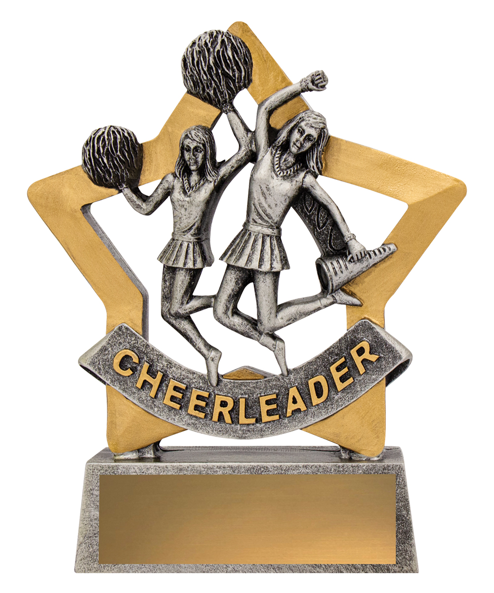 Affordable and popular Cheer Mini Star trophy ideal for your cheerleaders. An attractive star inspired design, classic silver and gold colours and at a budget price, these cheerleading trophies are well suited for your order.