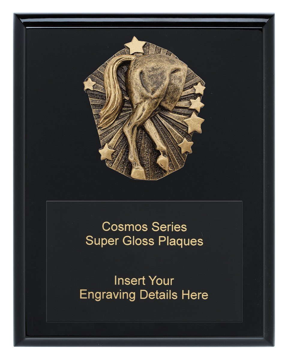 Range of super gloss plaques in classic black with brilliant Cosmos fronts and matte black engraving. Choose plaque - available in 3 sizes - to suit your sport or activity.