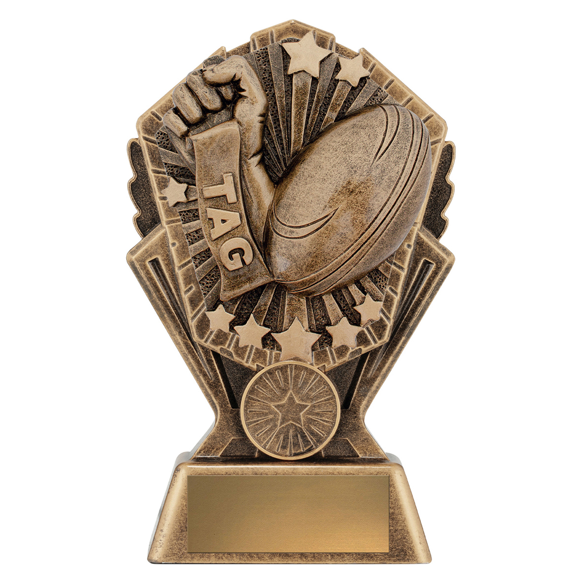 Brilliant series of 'Cosmos' trophies for Tag Football. Trophy series available in many different sports and activities. Available in 3 sizes with space for custom insert if required.
