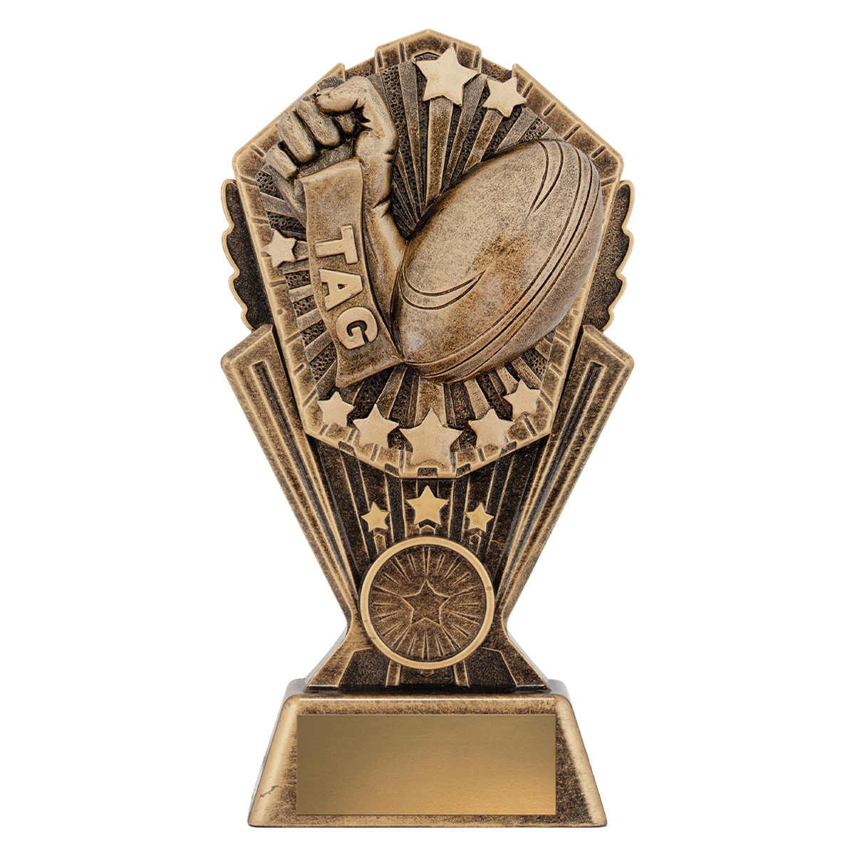 Brilliant series of 'Cosmos' trophies for Tag Football. Trophy series available in many different sports and activities. Available in 3 sizes with space for custom insert if required.