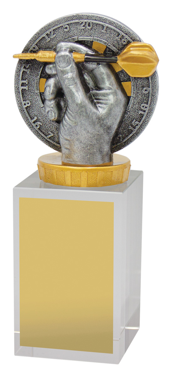 Series of affordable crystal blocks that feature charming antique silver top for your sport or activity. An appealing award alternative to consider for your event or presentation.