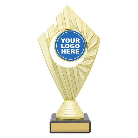 Flyer Series of trophies feature beautifully designed holders on columns of different colours - option to showcase 25 or 50mm logo or insert.