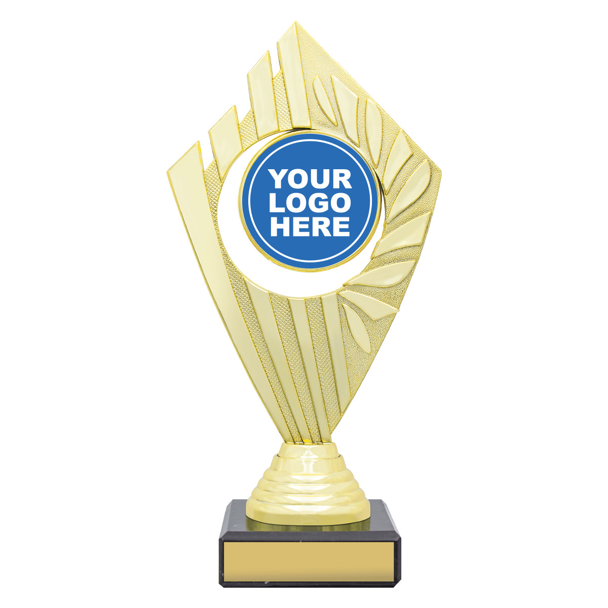 Flyer Series of trophies feature beautifully designed holders on columns of different colours - option to showcase 25 or 50mm logo or insert.