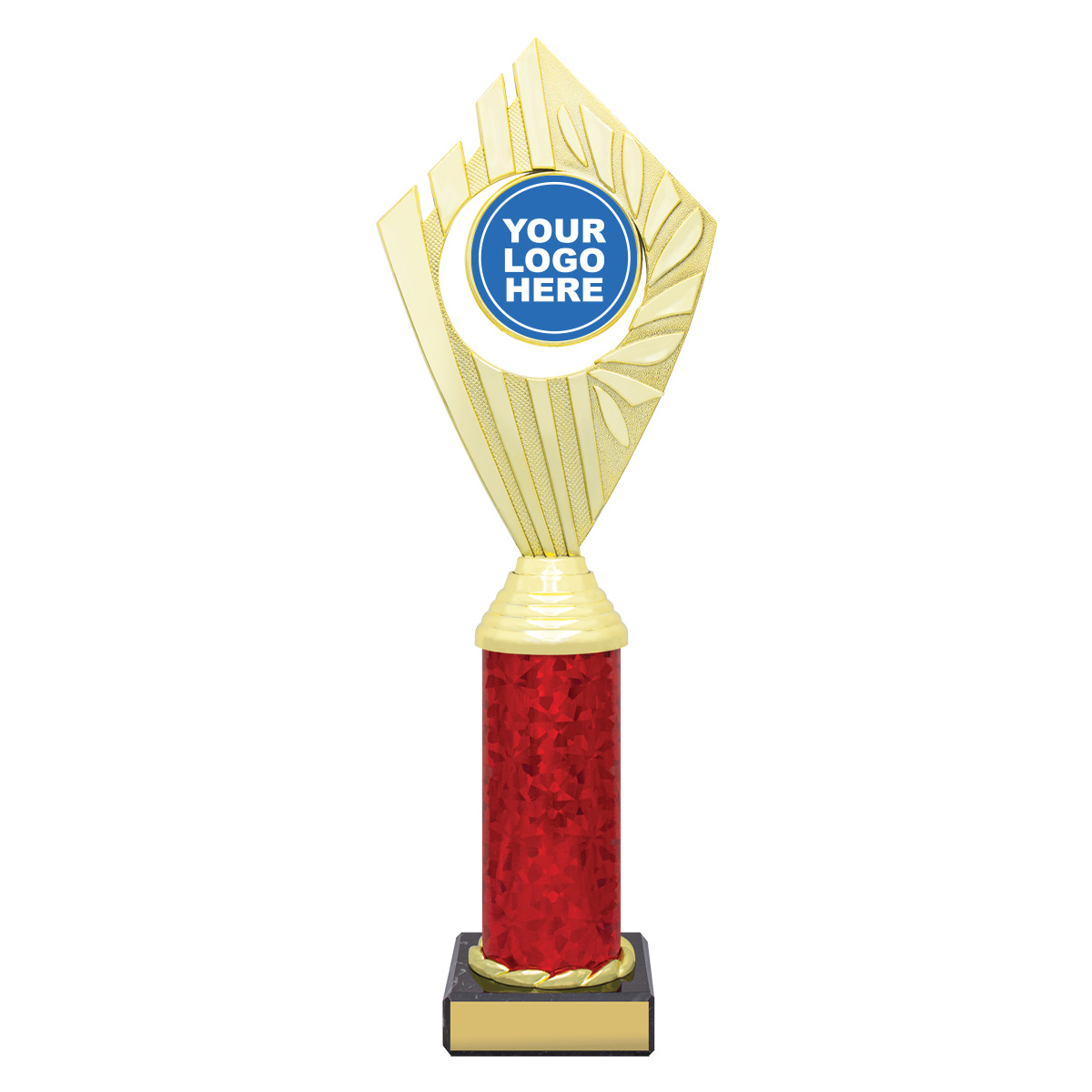 Flyer Series of trophies feature beautifully designed holders on columns of different colours - option to showcase 25 or 50mm logo or insert.