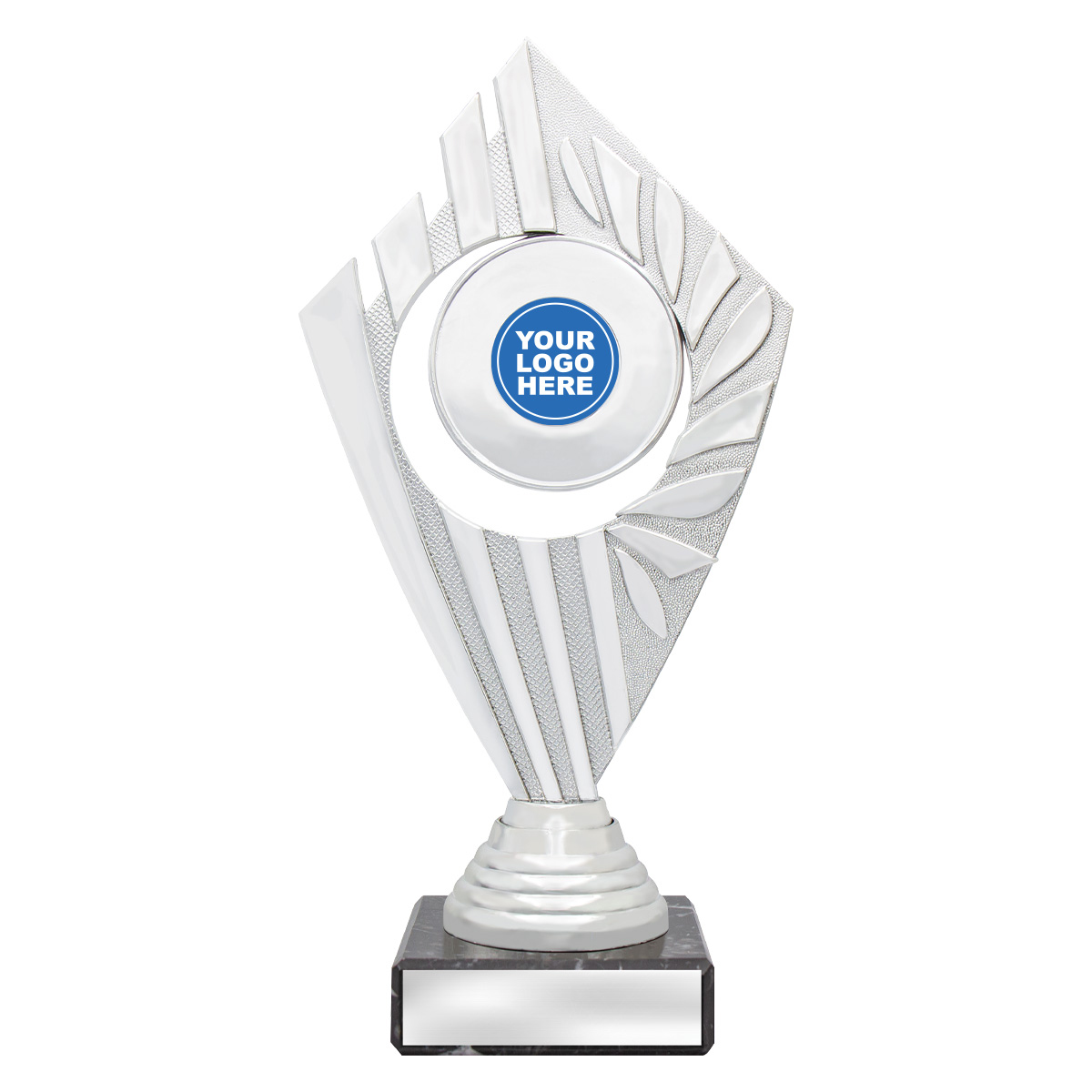 Flyer Series of trophies feature beautifully designed holders on columns of different colours - option to showcase 25 or 50mm logo or insert.