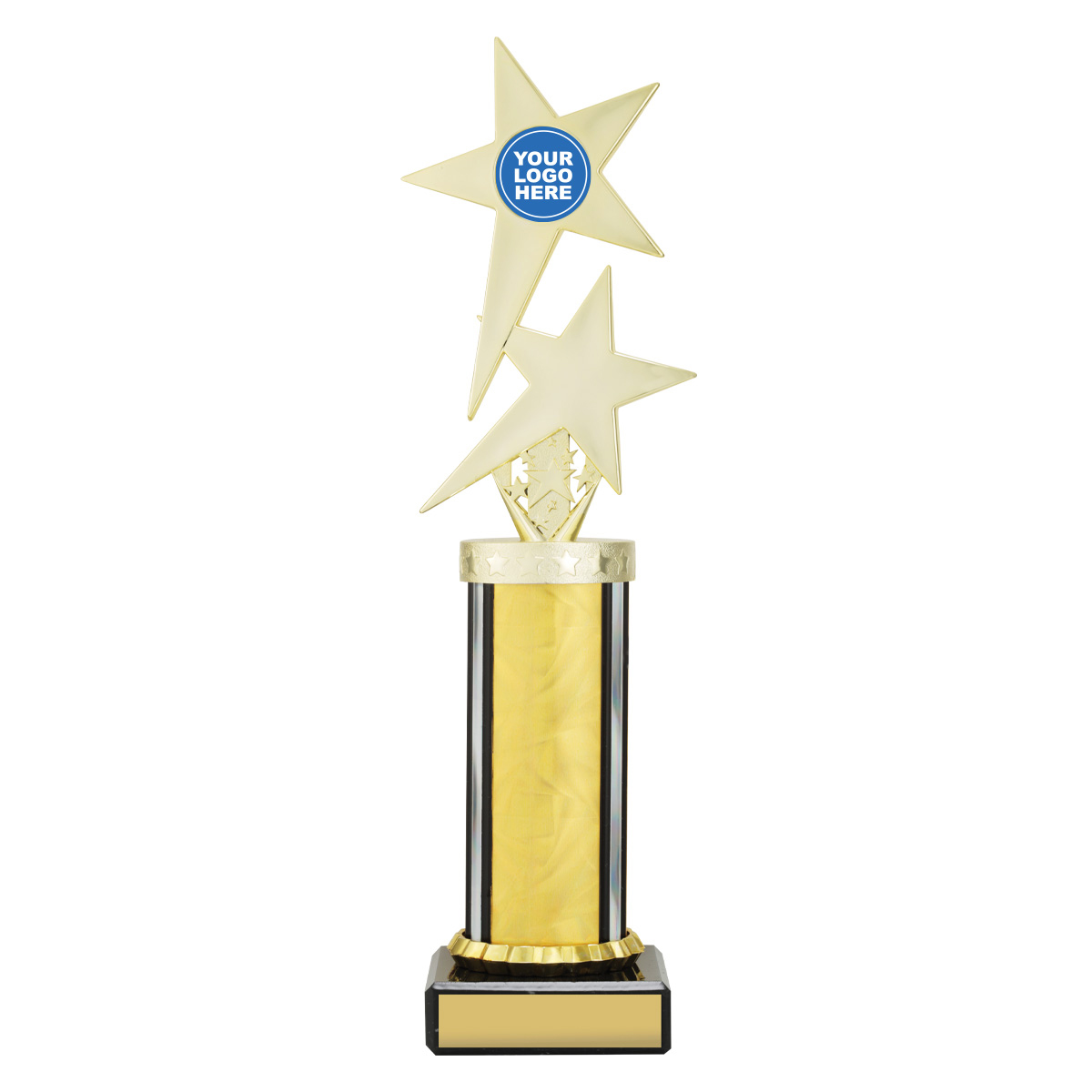 Versatile Twin Star series features dynamic star inspired top on bright Dazzle columns - choose colour to suit your order. Show off your logo or insert in style.