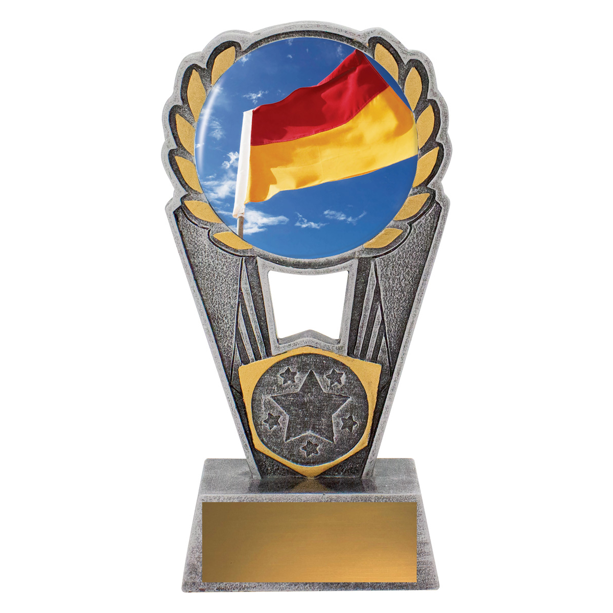 Polaris series offers a striking design of trophy with excellent options for personalisation. Trophies showcase the iconic lifesaving flag over a number of sizes. Space for your 25mm logo if required.