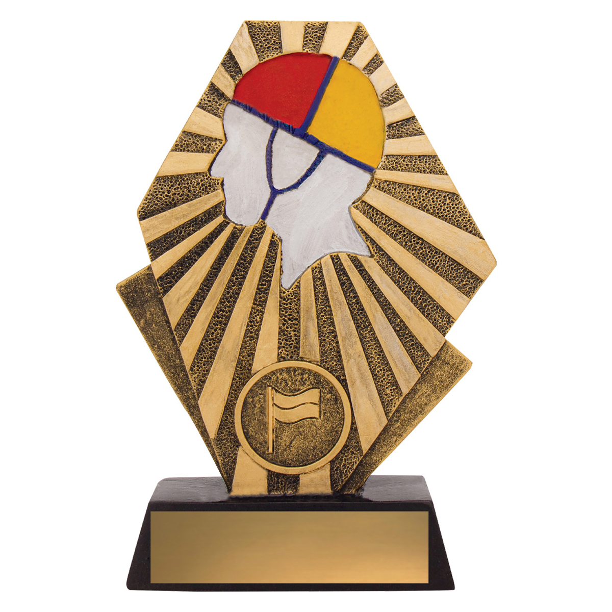 Lifesaving trophies offer an elegant design that highlights the iconic lifesaver with cap theme in red and yellow colours. A generic award theme that will work well for various lifesaving events and competitions. In 3 sizes and with space for 25mm insert if required.