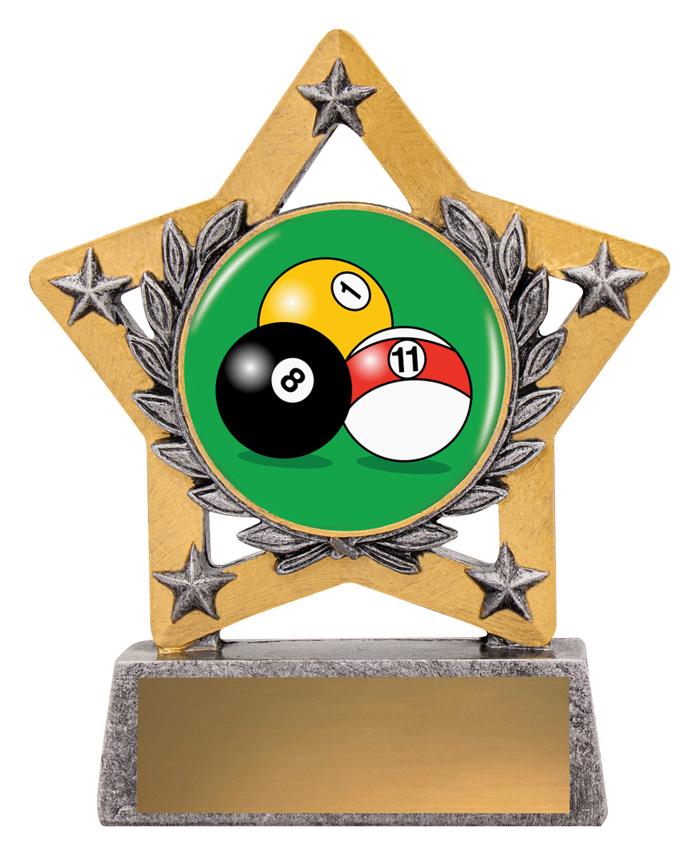 Star inspired design with traditional gold and silver colours - showcase brilliant colour image for your sport or activity. Mini stars offer great value.
