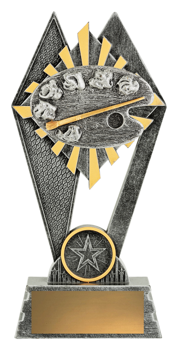 The Peak Series is an innovative trophy series offering super value for such an impressive size range. An elevated design that features an easel and brush against a vibrant sunray style background. Available in 3 sizes.