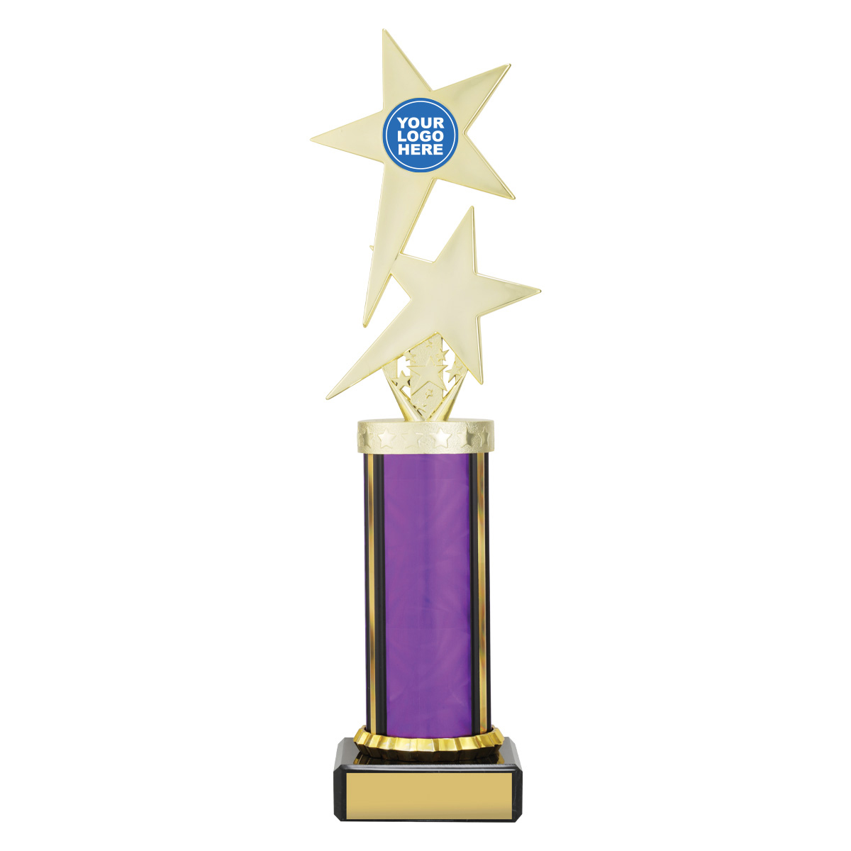 Versatile Twin Star series features dynamic star inspired top on bright Dazzle columns - choose colour to suit your order. Show off your logo or insert in style.