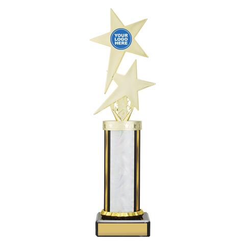 Versatile Twin Star series features dynamic star inspired top on bright Dazzle columns - choose colour to suit your order. Show off your logo or insert in style.