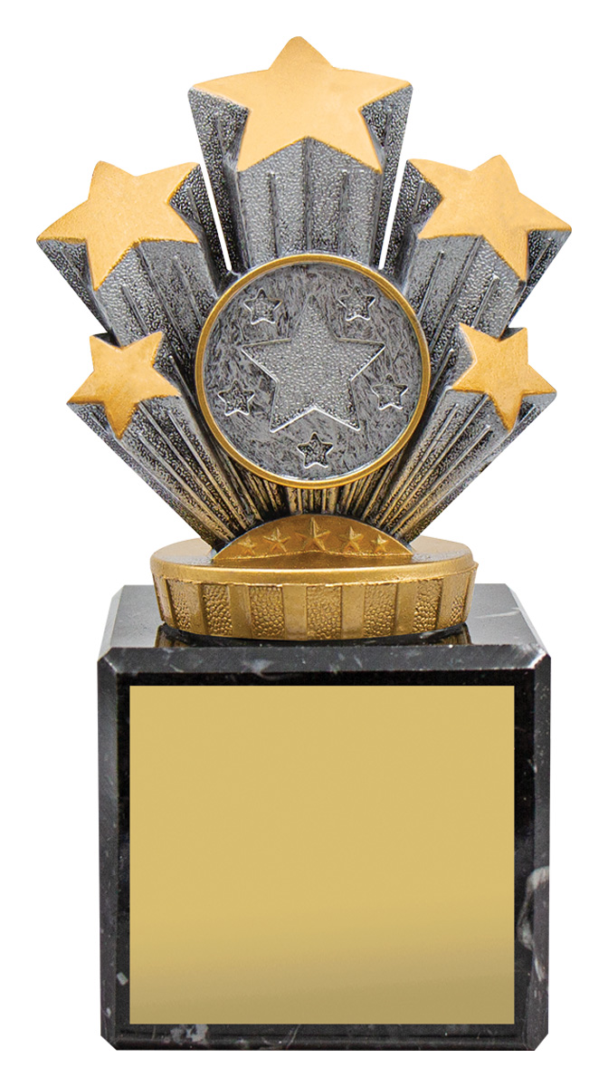 Reliable and affordable trophy choice, the Marble Trophy series features classic European marble and the unique Stars holder top. Marble trophies available in 4 sizes and provide extra prestige to your trophy award presentation.
