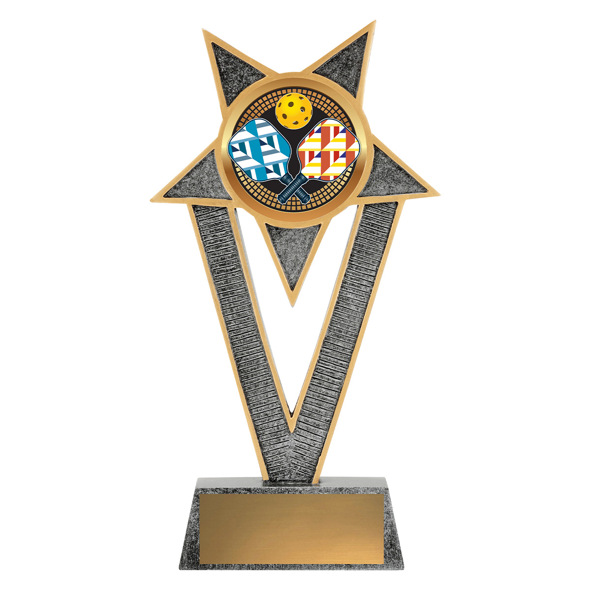 Star inspired trophy series, the Ventura offers prime position for colour insert to represent your sport.