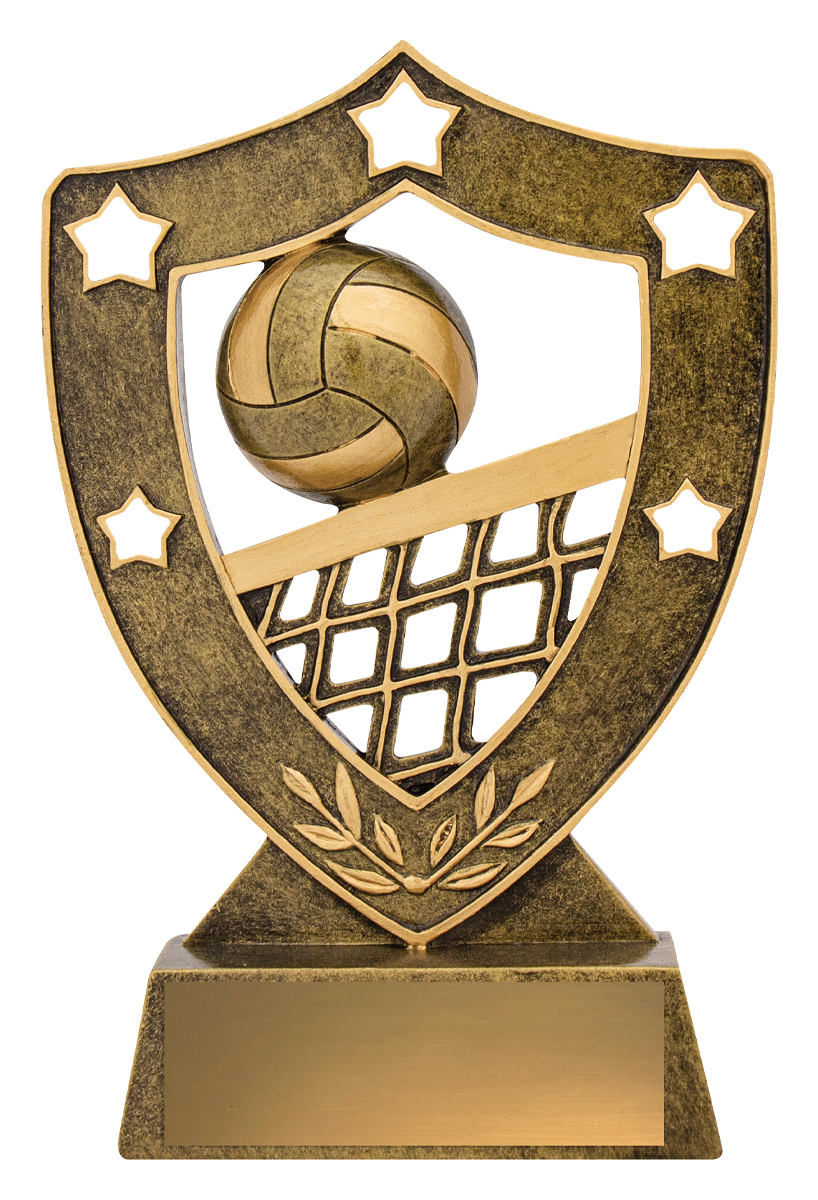 Classic wreath and shield inspired design, the Volleyball Trophy Gold Shield is an affordable and popular award choice. These volleyball trophies are a reliable option for your award requirements and is available in 3 convenient sizes.