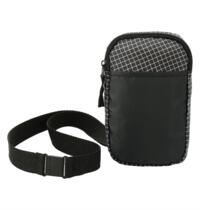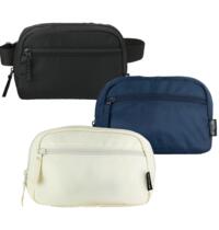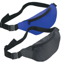 Versatile travel bag which is ideal for holding passports and important items while travelling or at events. It is manufactured from 300D polyester with an on-trend heather style finish and a black zippered closure. Byron has a zippered internal pocket and an adjustable woven waist strap with a secure snap-lock closure.